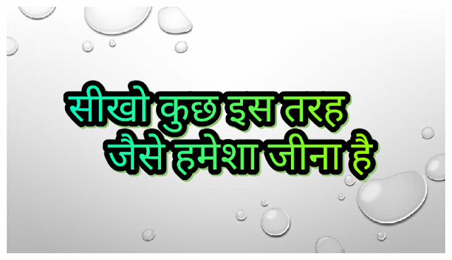 किसकी जिंदगी कितनी लंबी है जब ये बात कोई नहीं जानता तो क्यों न हम जिंदगी को इस तरह जिए जैसे कि हमे हमेशा जीना है , न की इस तरह जिये जैसे की हम को कल ही मरना है।